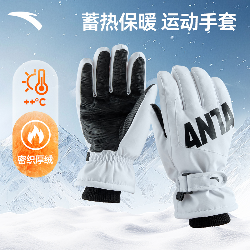 安踏运动手套滑雪户外加绒加厚防风防寒保暖可调节防掉防滑手套