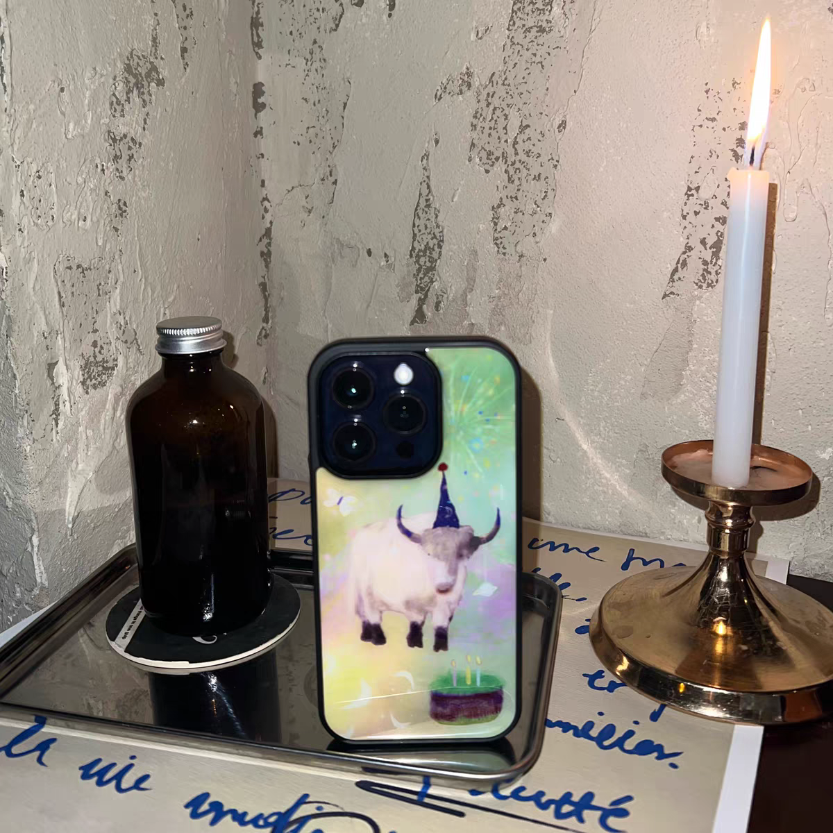 原创个性过生日的牦牛亚克力黑边适用苹果iPhone16promax手机壳15pro小米14Pro保护套华为mate防摔三星S234