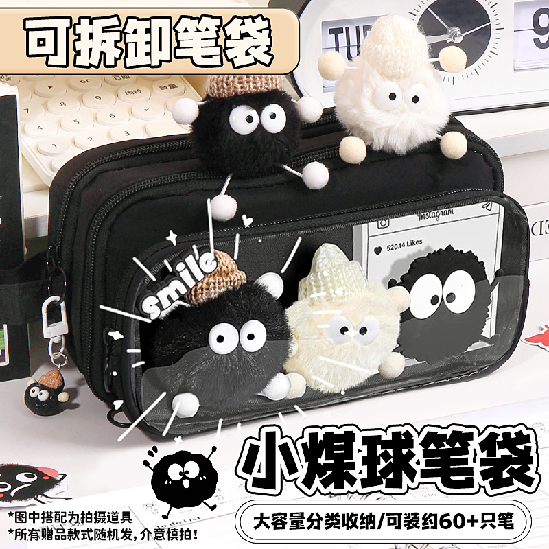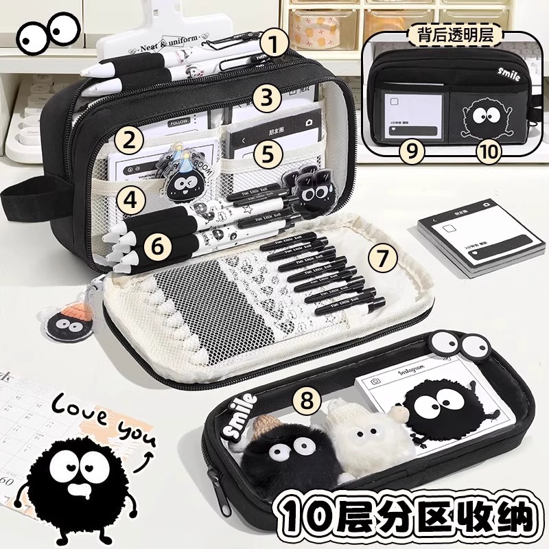2025新款高颜值小煤球笔袋大容量文具盒初中生女孩款文具袋铅笔盒男孩款小学生ins风高颜值款透明痛包多功能4