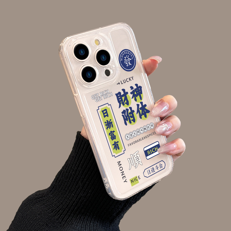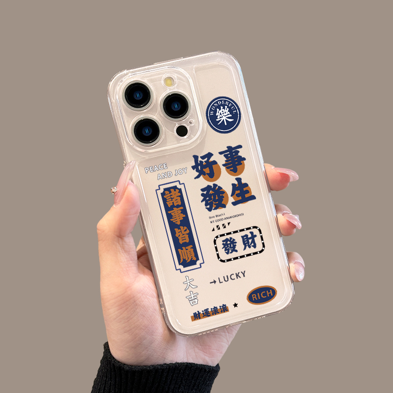 ivan适用苹果15promax手机壳iphone14新款13男女17好事发生16情侣plus国潮pro文字max复古风15pro透明套财神