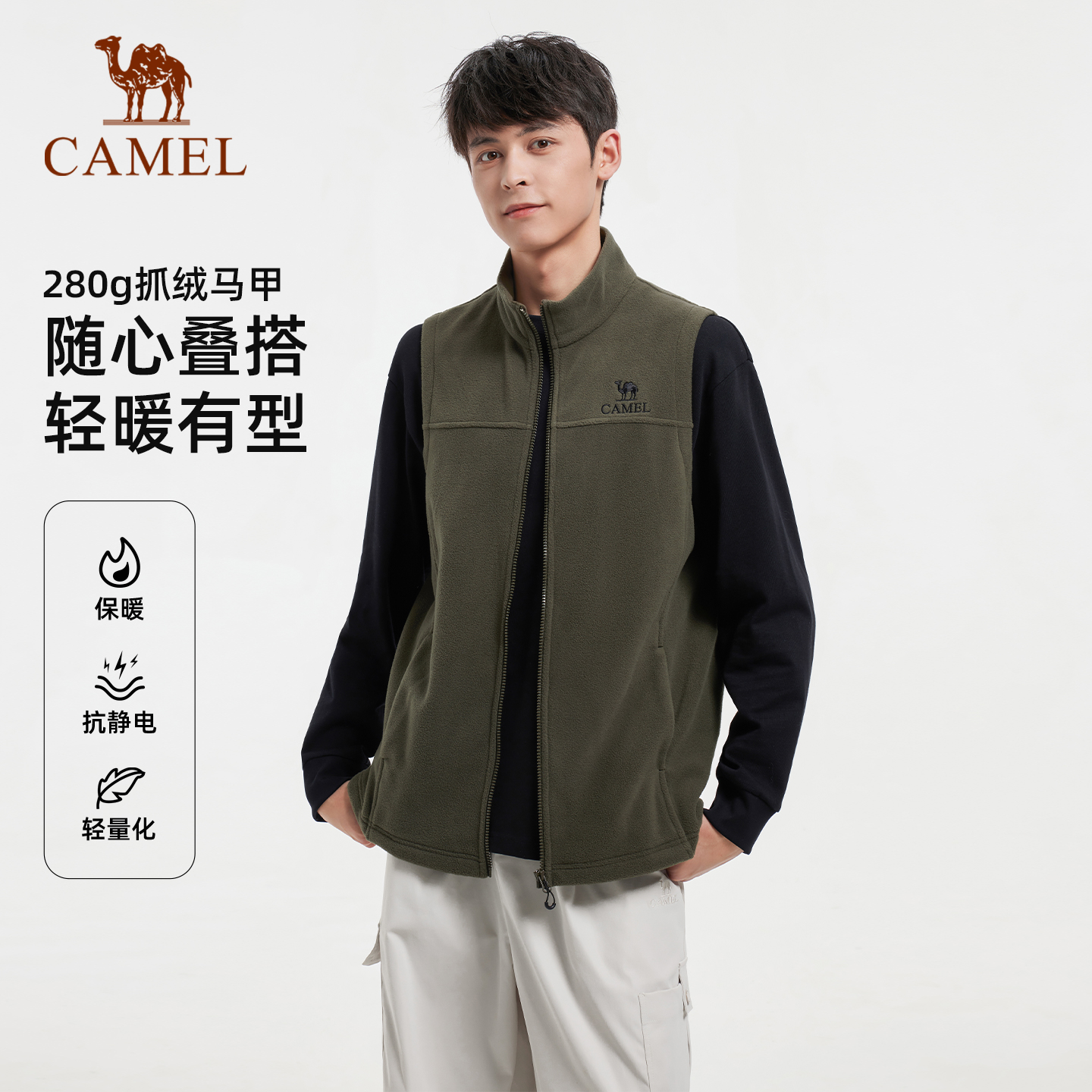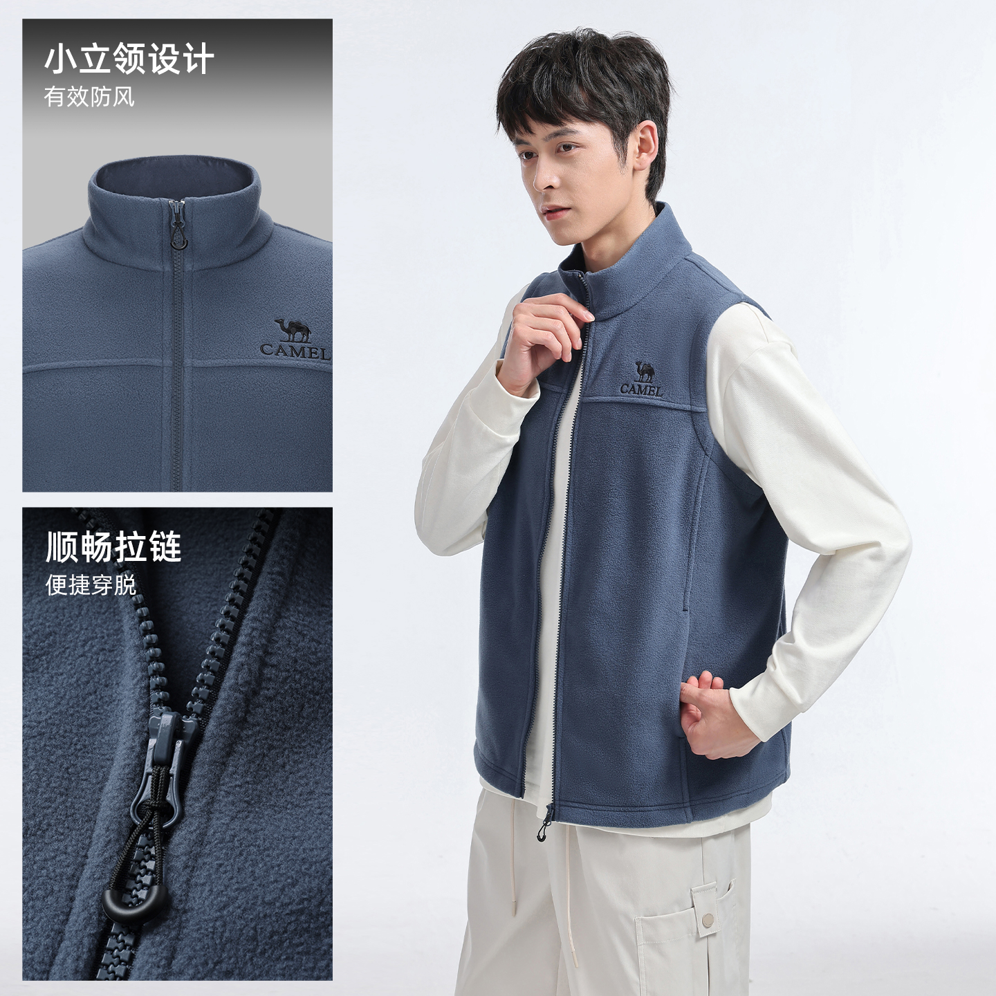 骆驼运动抓绒衣马甲男立领防风加绒保暖抗静电摇粒绒冲锋衣内胆女
