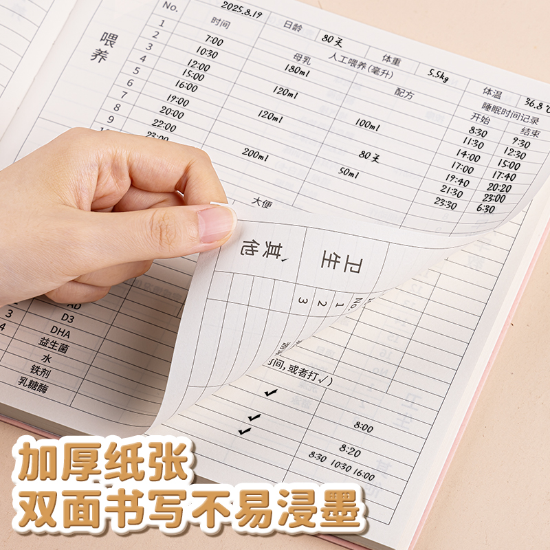 喂养日记本方形软皮笔记本子宝宝成长发育记录本孩子儿童记录册龙年新生婴儿生活日常作息辅食母乳喂奶记事本