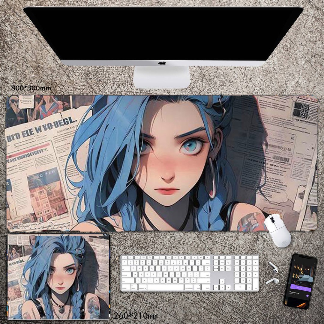 暴走萝莉金克丝鼠标垫超大号英雄联盟电脑键盘垫电竞游戏桌垫新款