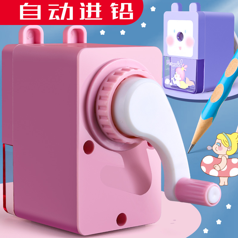 削笔机手动小学生卷笔刀儿童转笔刀手摇式铅笔刀自动进铅多功能笔刨可调粗细刨笔机销笔器幼儿园小型绞笔刀