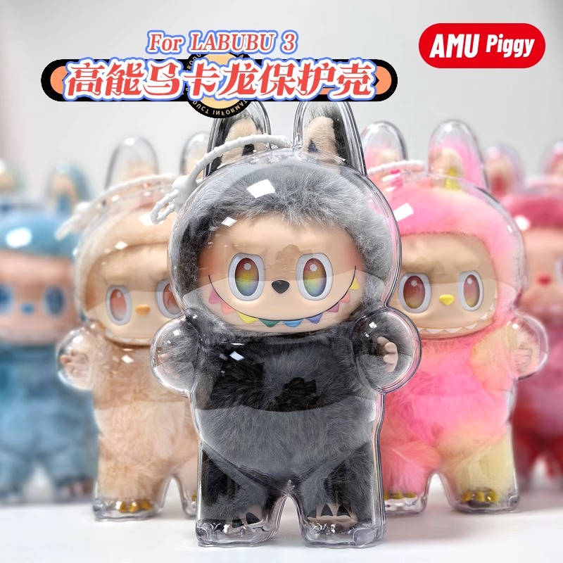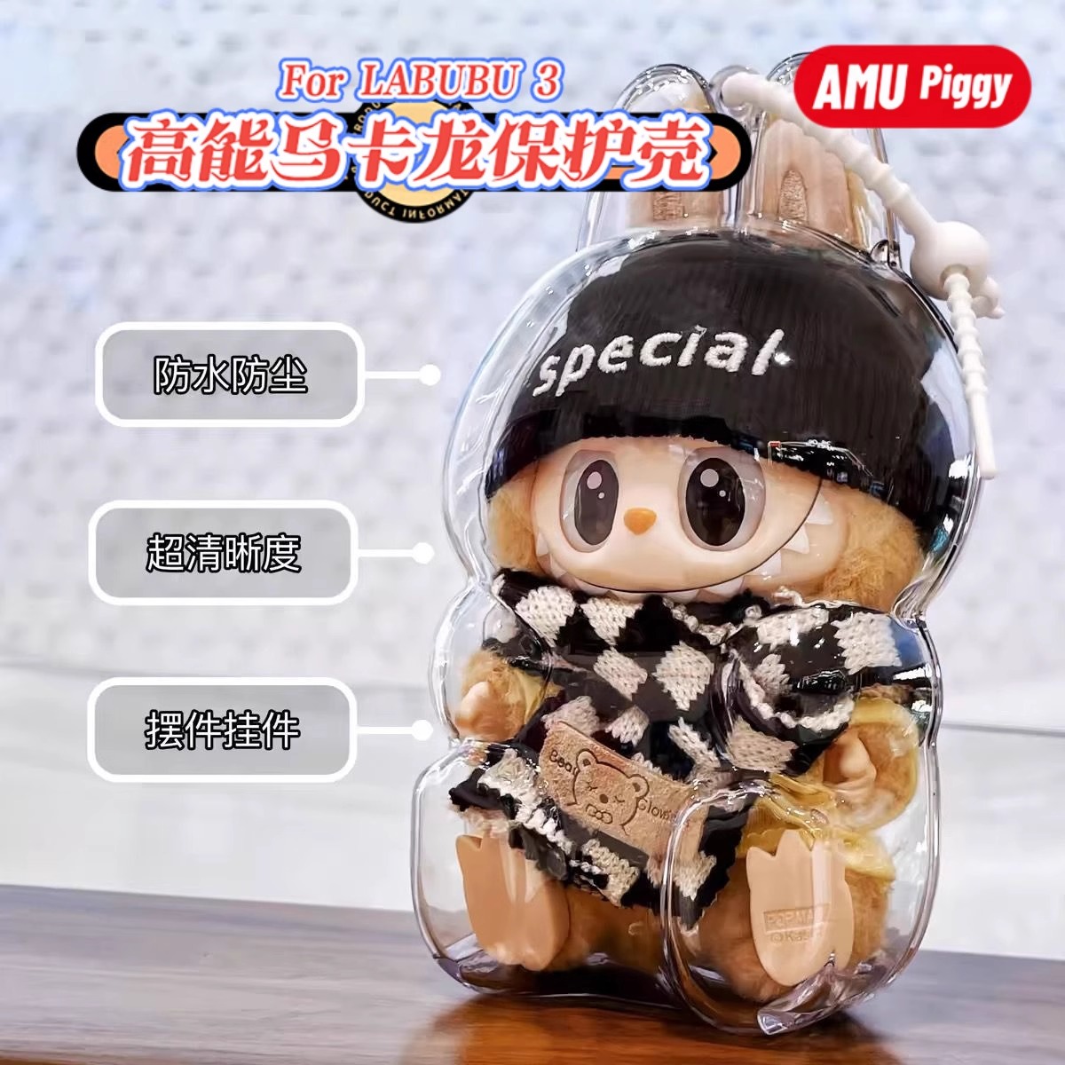 labubu保护壳拉布布泡泡玛特保护套透明搪胶第三代防尘罩前方高能