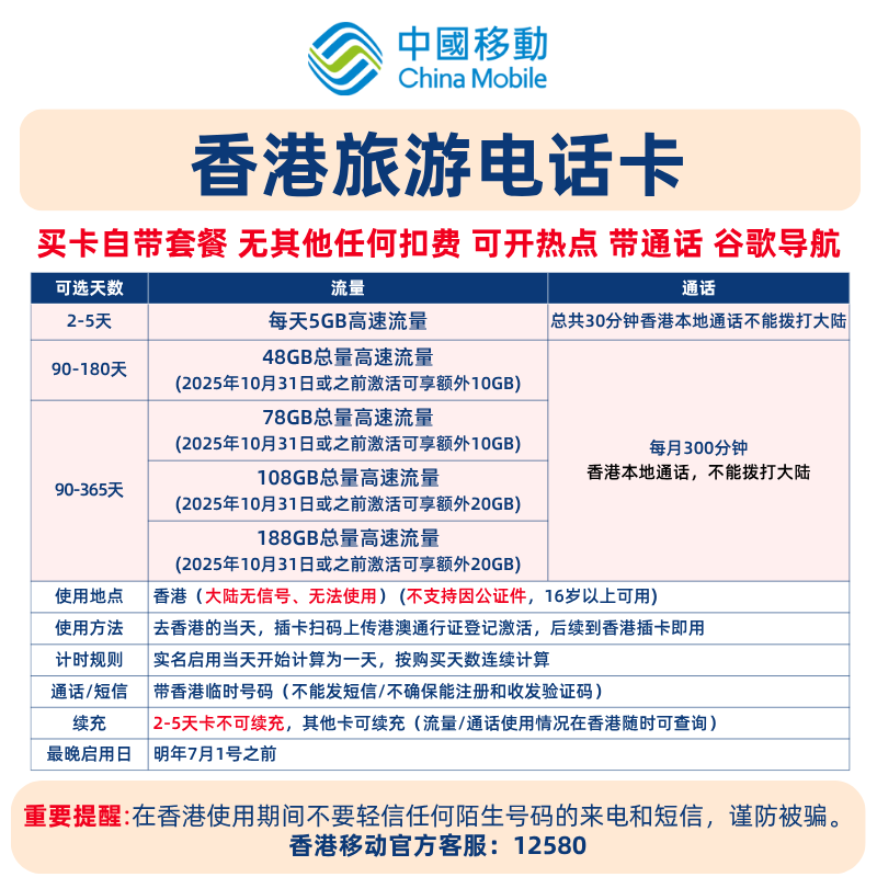 香港电话卡 每天5GB带通话 流量上网卡2/3/4/5天 可深圳关口自取