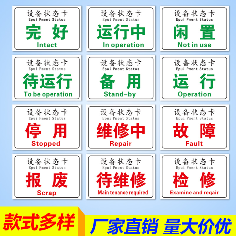 设备状态标识牌磁性贴完好运行中闲置备用停用维修中故障报废检修卡免费设计支持内容可定制标示警示提示标志