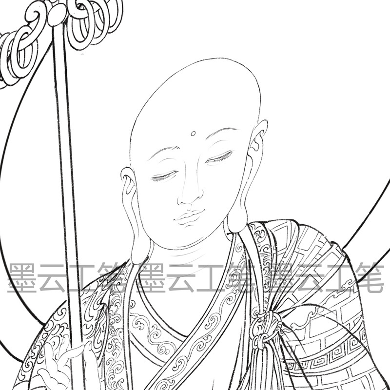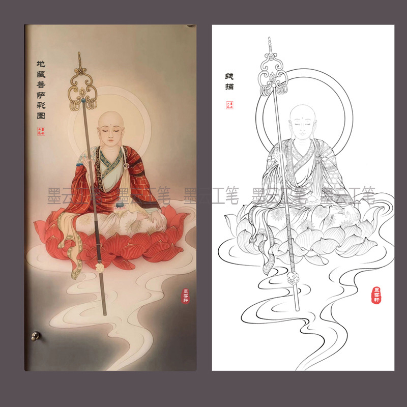 底稿 •教程墨云工笔原创佛像 底稿坐像地藏菩萨线稿文字步骤讲解