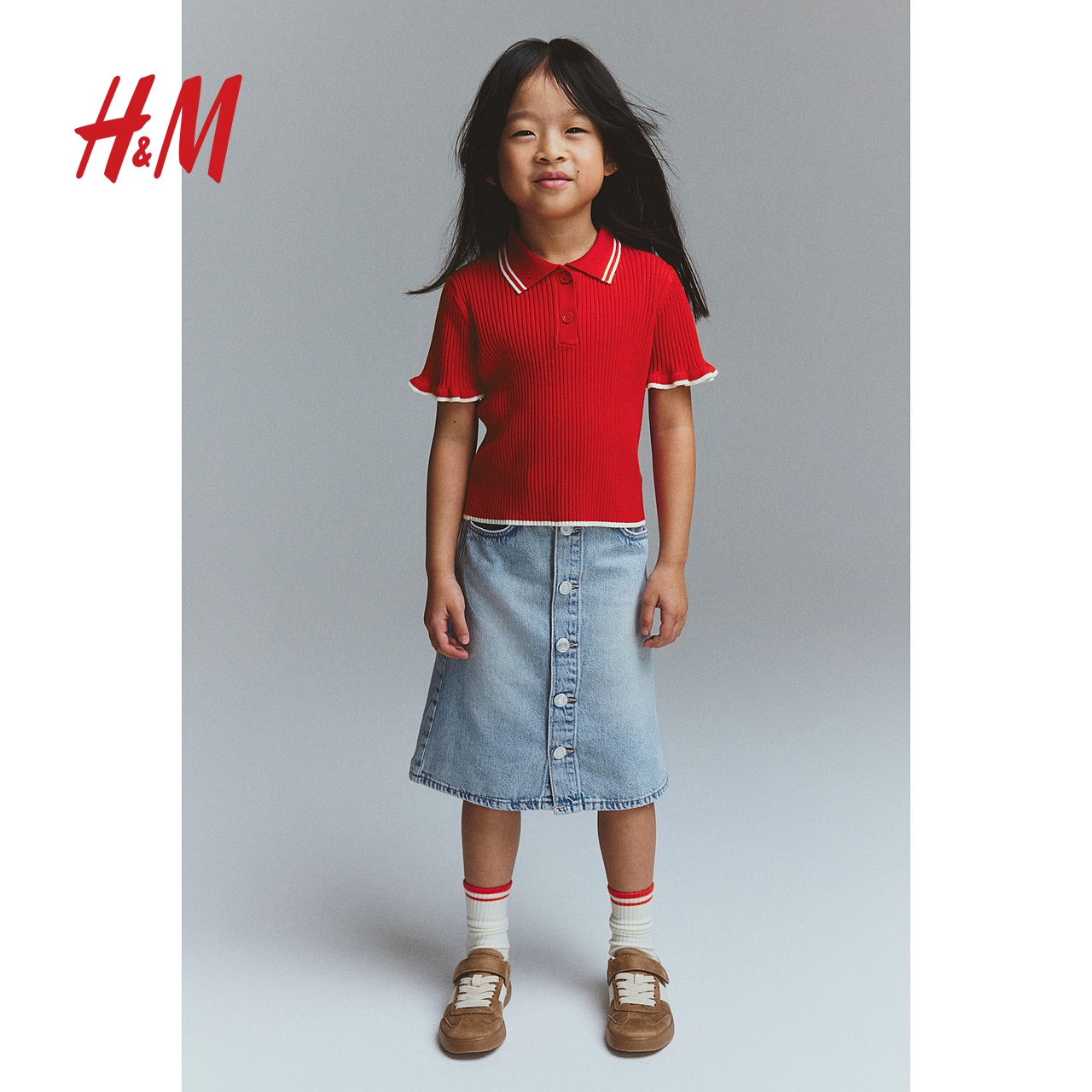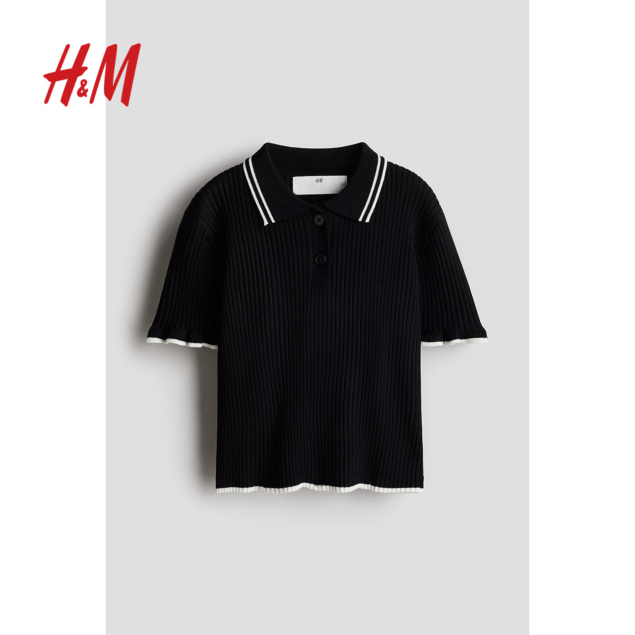 HM2025年秋季新款童装儿童女童罗纹针织有领上衣1270193