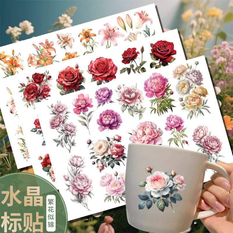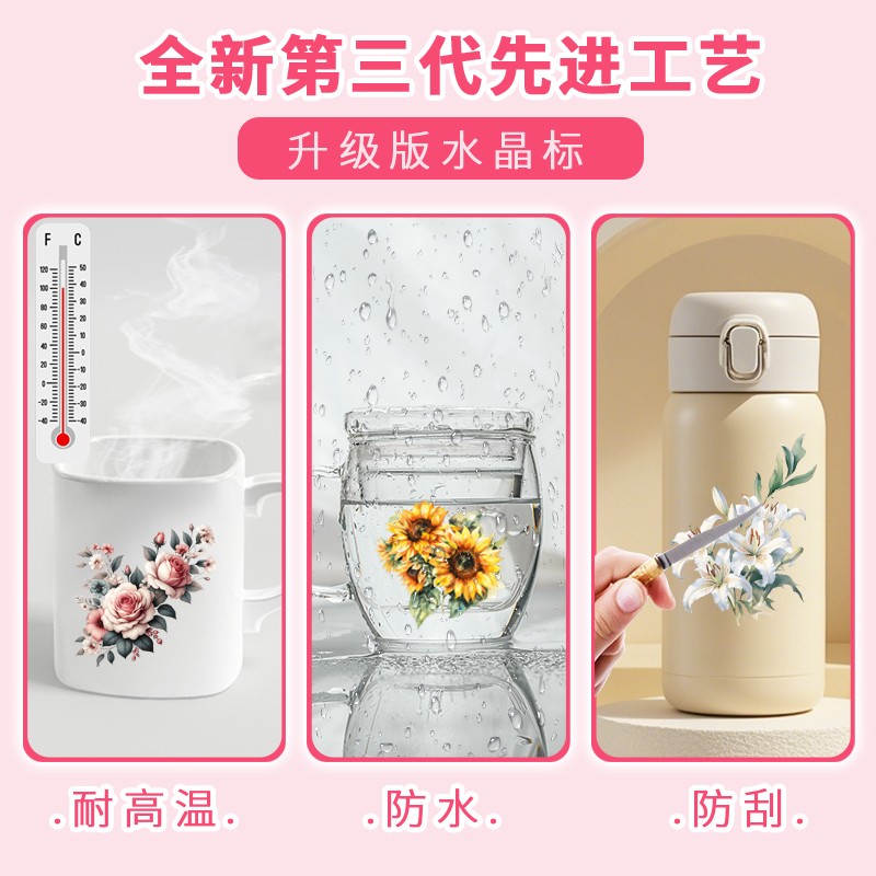 向日葵水仙花新款植物花卉水杯贴纸转印贴防水玻璃杯贴uv水晶标