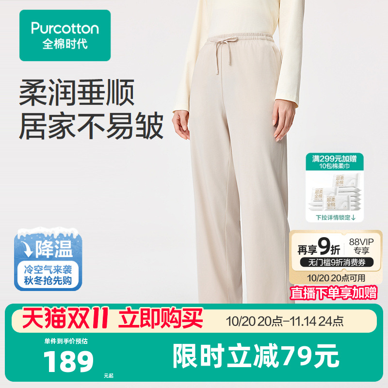 全棉时代女士睡裤2025年秋季新款水光棉家居长裤裤子长裤居家裤