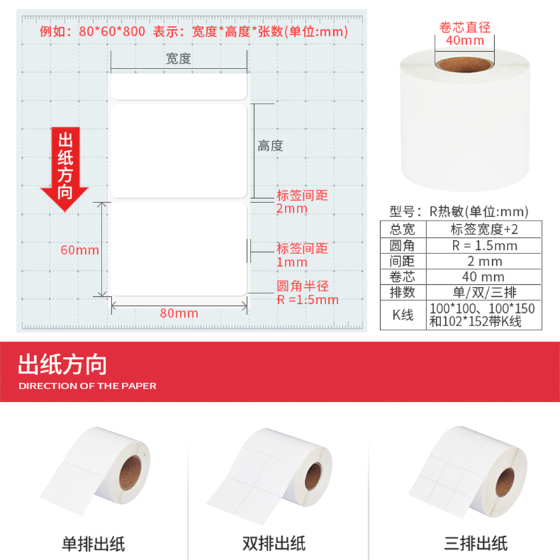 空白热敏不干胶打印条码纸60 40 30 50 70 100热敏纸标签贴纸称纸打印清晰通用自粘商用