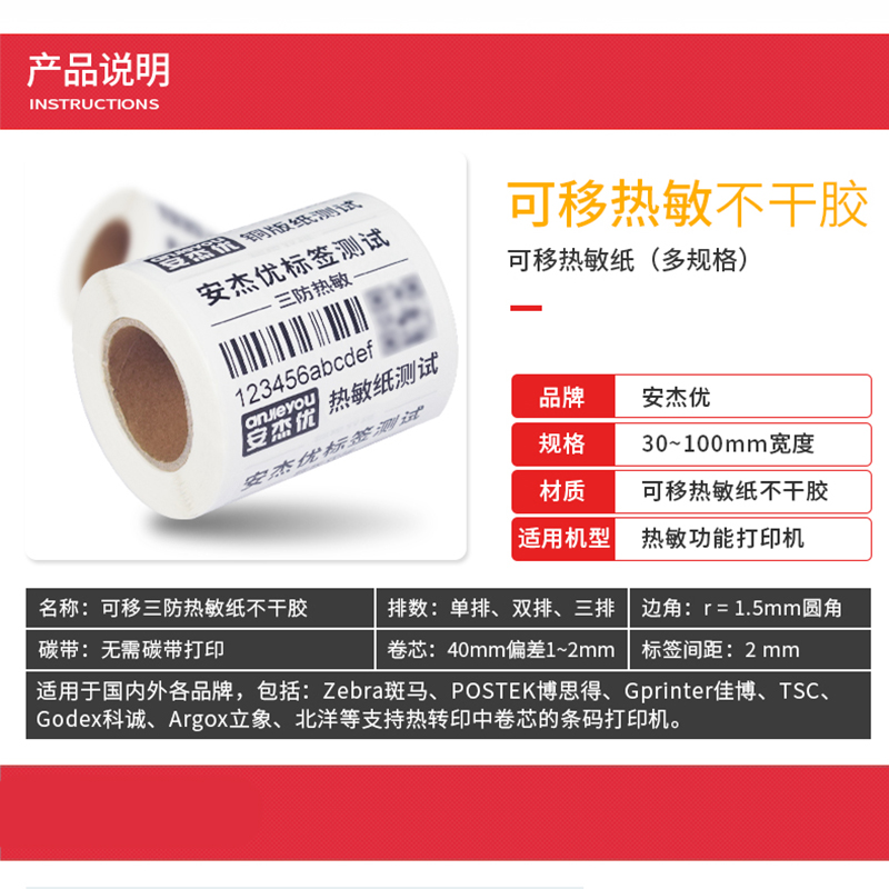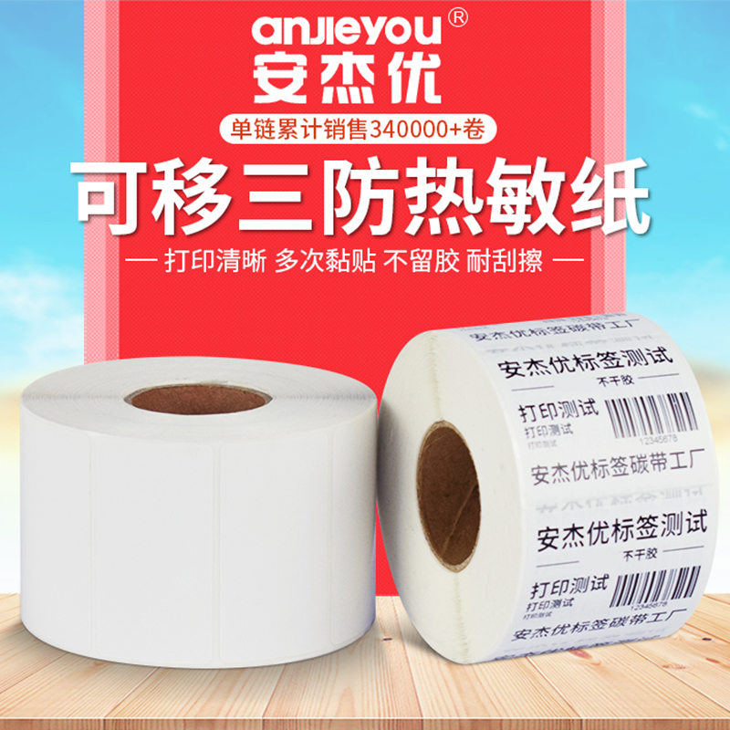 可移三防热敏标签纸开料易撕不留胶打印条码贴防水合成纸家具板材玻璃五防可移除热敏合成纸背胶打印条码贴纸