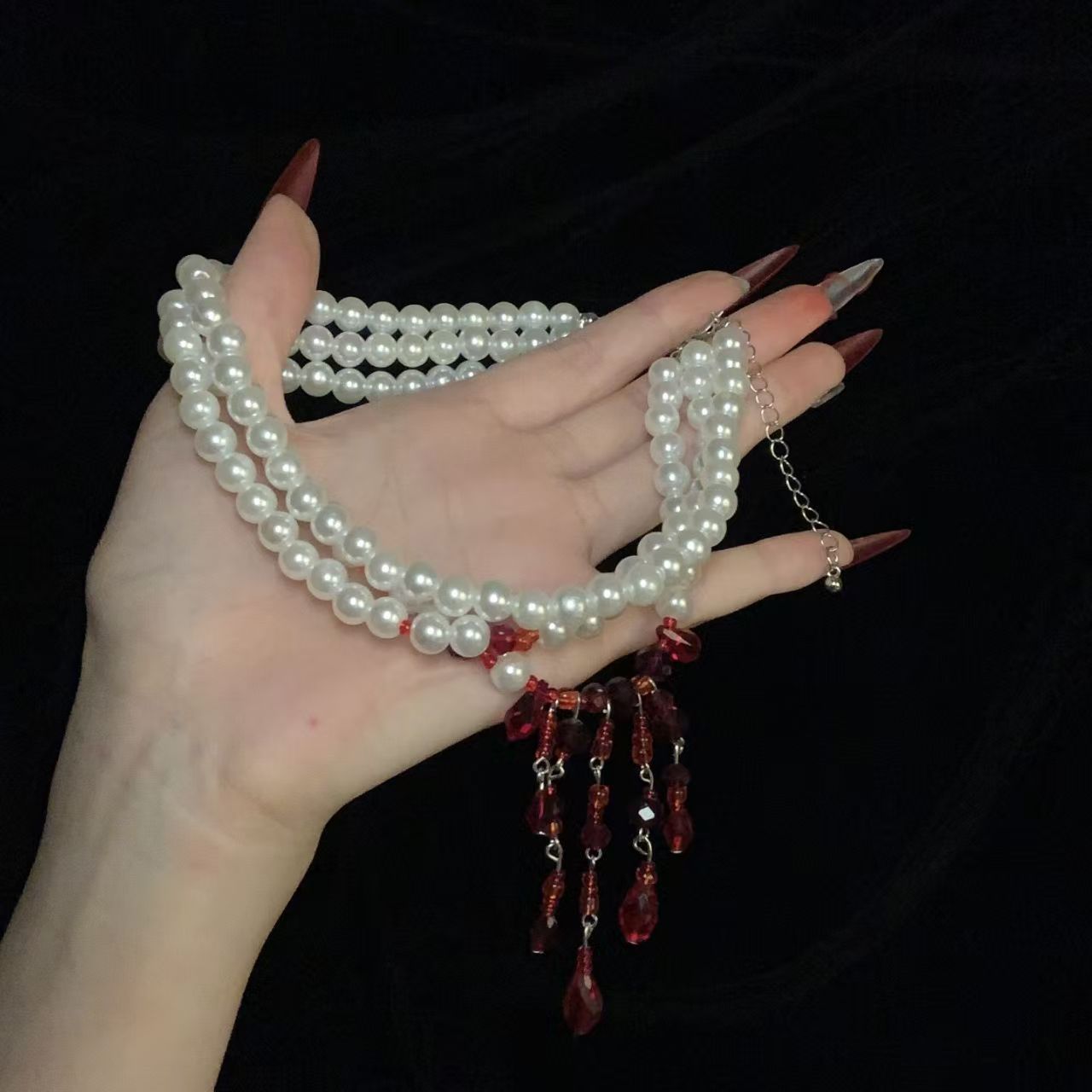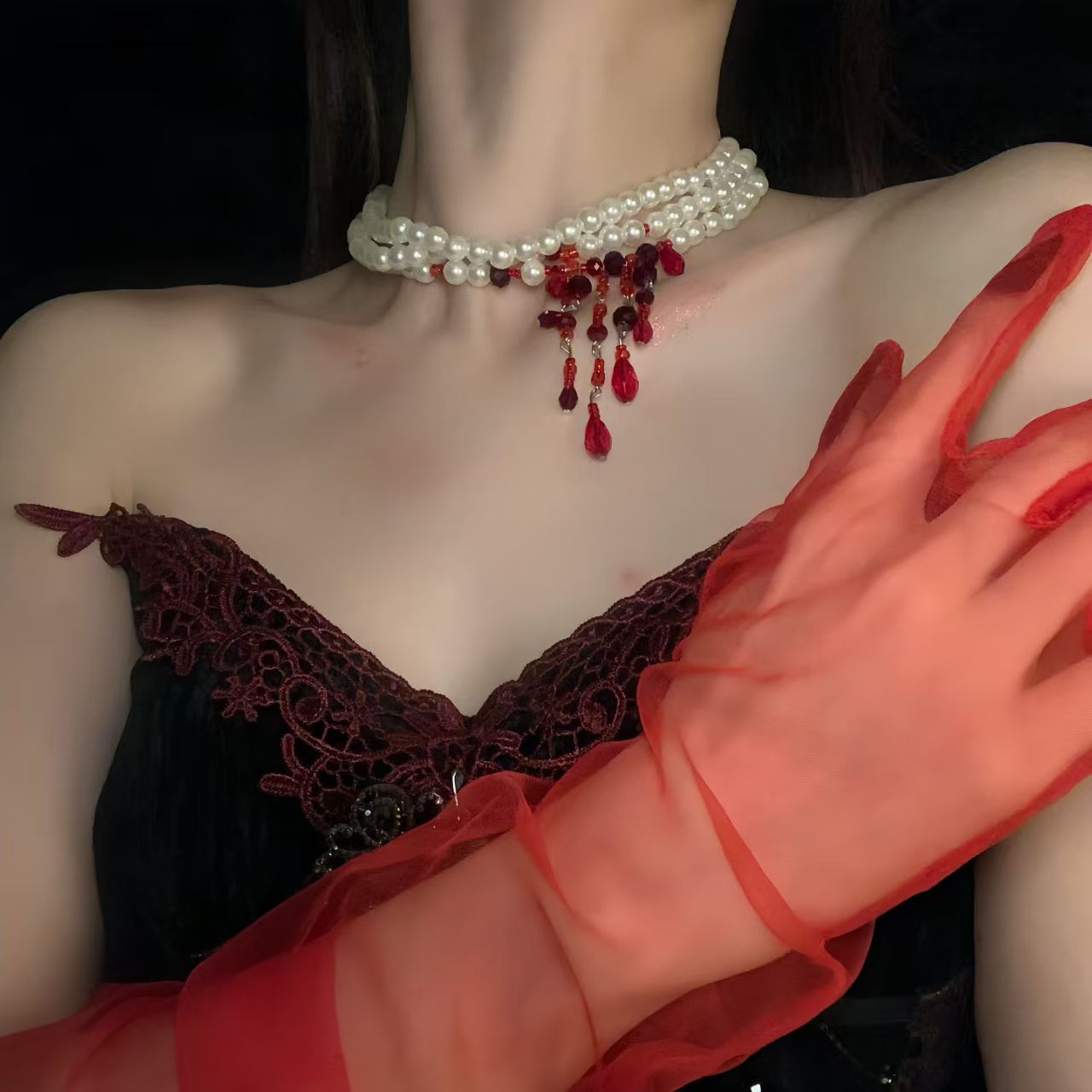 暗黑血液仿珍珠流苏choker项链女万圣节日装扮哥特风个性颈链配饰