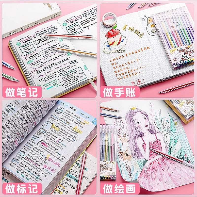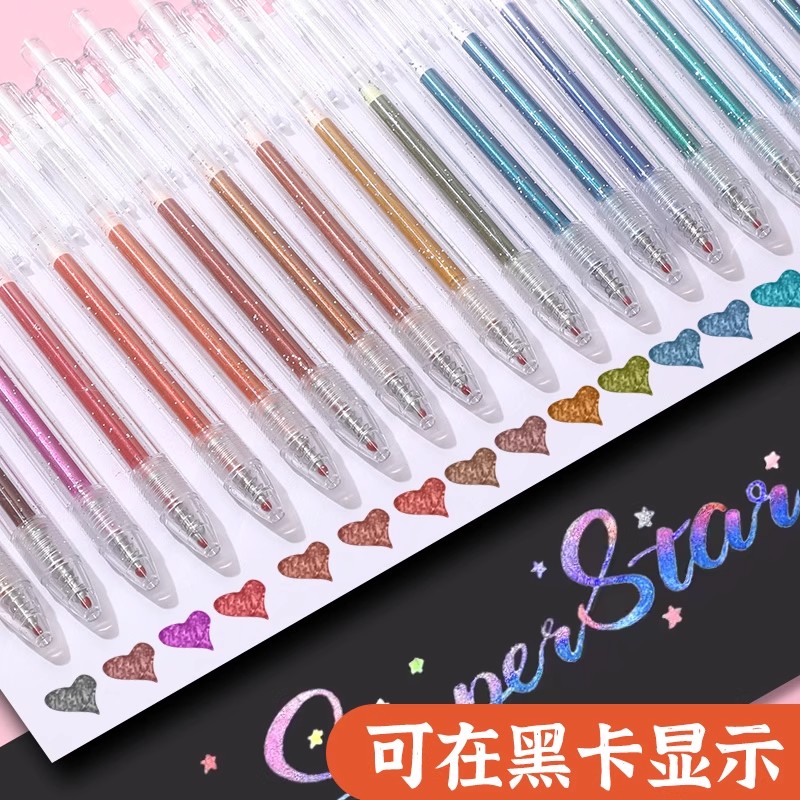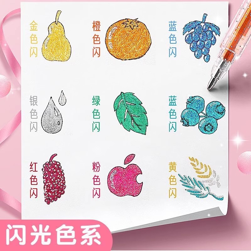 彩色闪光笔啫喱发光亮晶晶流沙银光变色做手账的手帐专用珠光标记儿童做笔记闪亮金属闪粉水彩笔荧光粉色金色