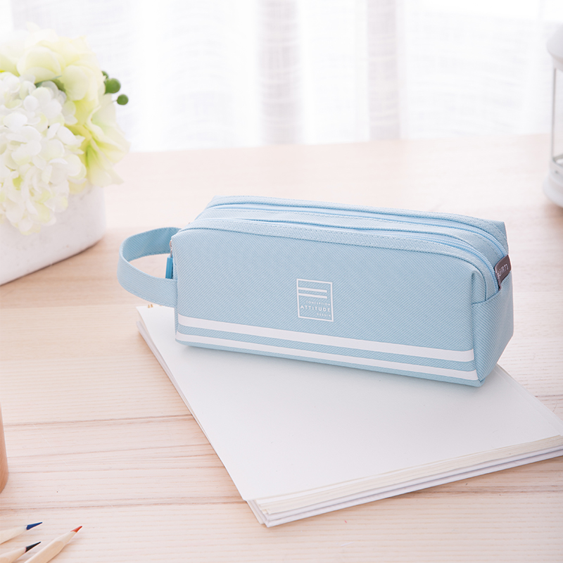 Deli/得力文具简约提手方形笔袋小清新多功能学生学习可爱大容量