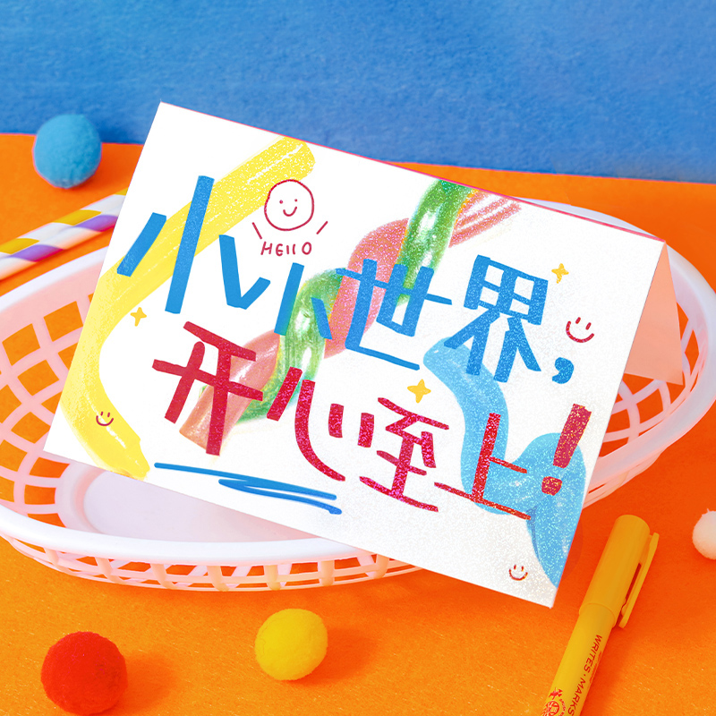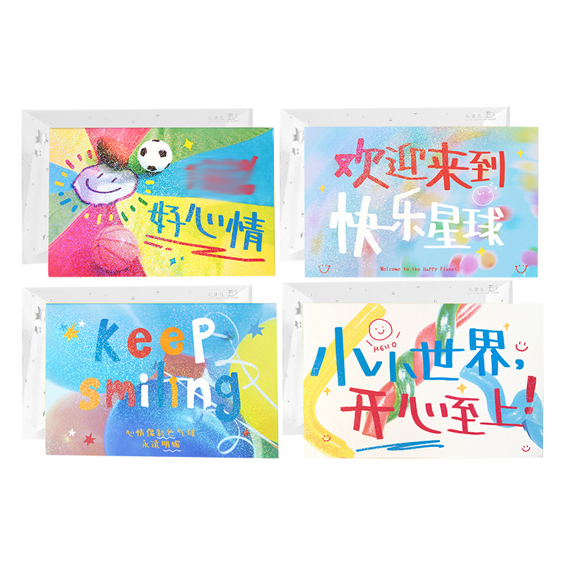 礼研社 闪膜贺卡《允许快乐入侵》涂鸦手写文案风多巴胺缤纷童趣彩色生日节日祝福感谢留言diy小卡片
