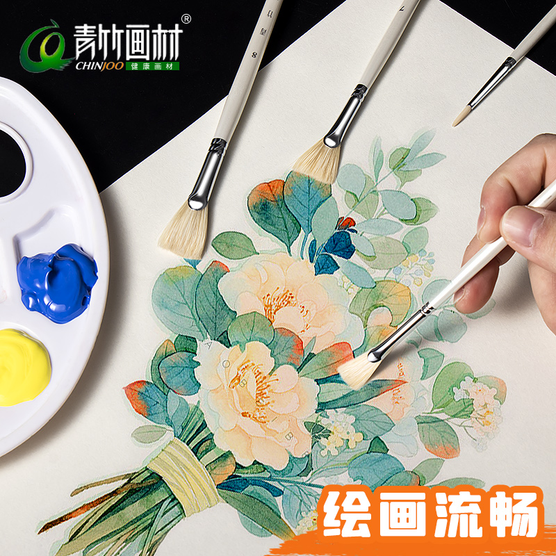 青竹水粉笔套装美术生专用流光白水粉水彩油画金典黑丙烯色彩笔排笔猪鬃扇形圆头尼龙黑骑士敬月光旗舰店