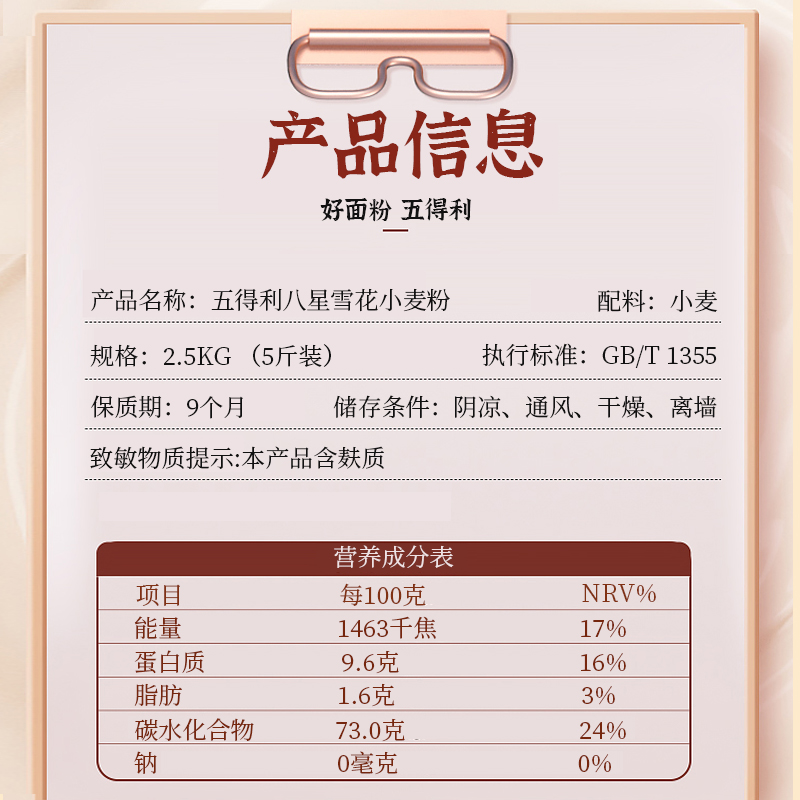 【五得利面粉】五星特精小麦粉家用中筋通用粉5斤/10斤/20斤包邮