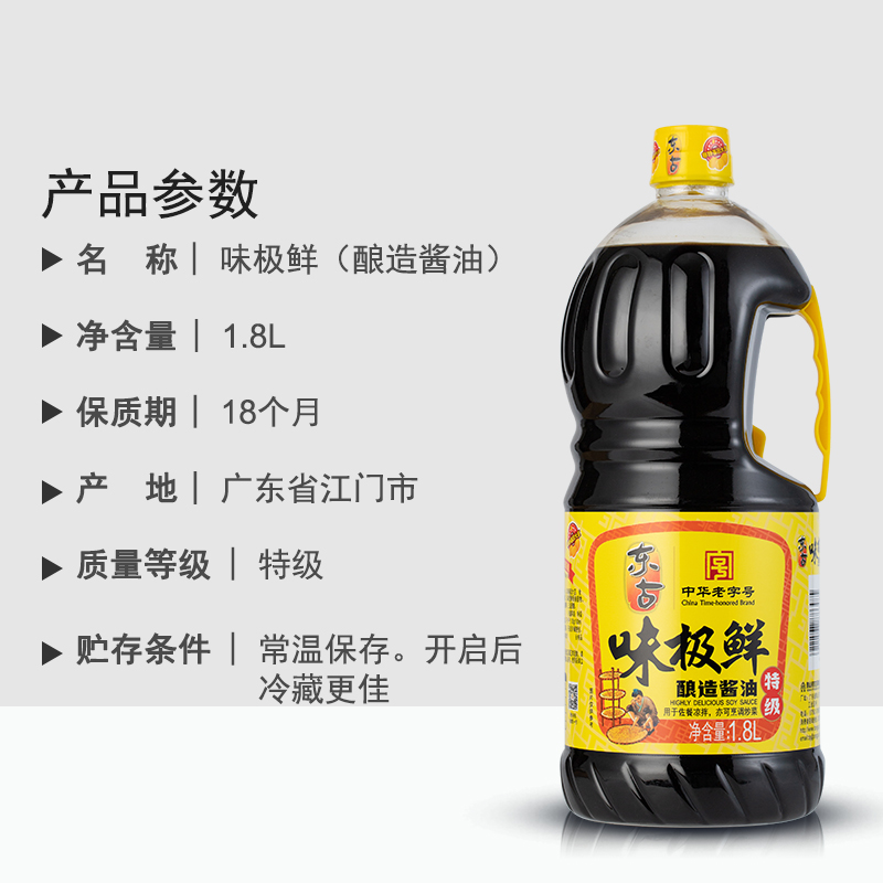 东古味极鲜特级酱油1.8L/1L/5L黄豆酿造一品鲜烹调炒菜烧烤调味