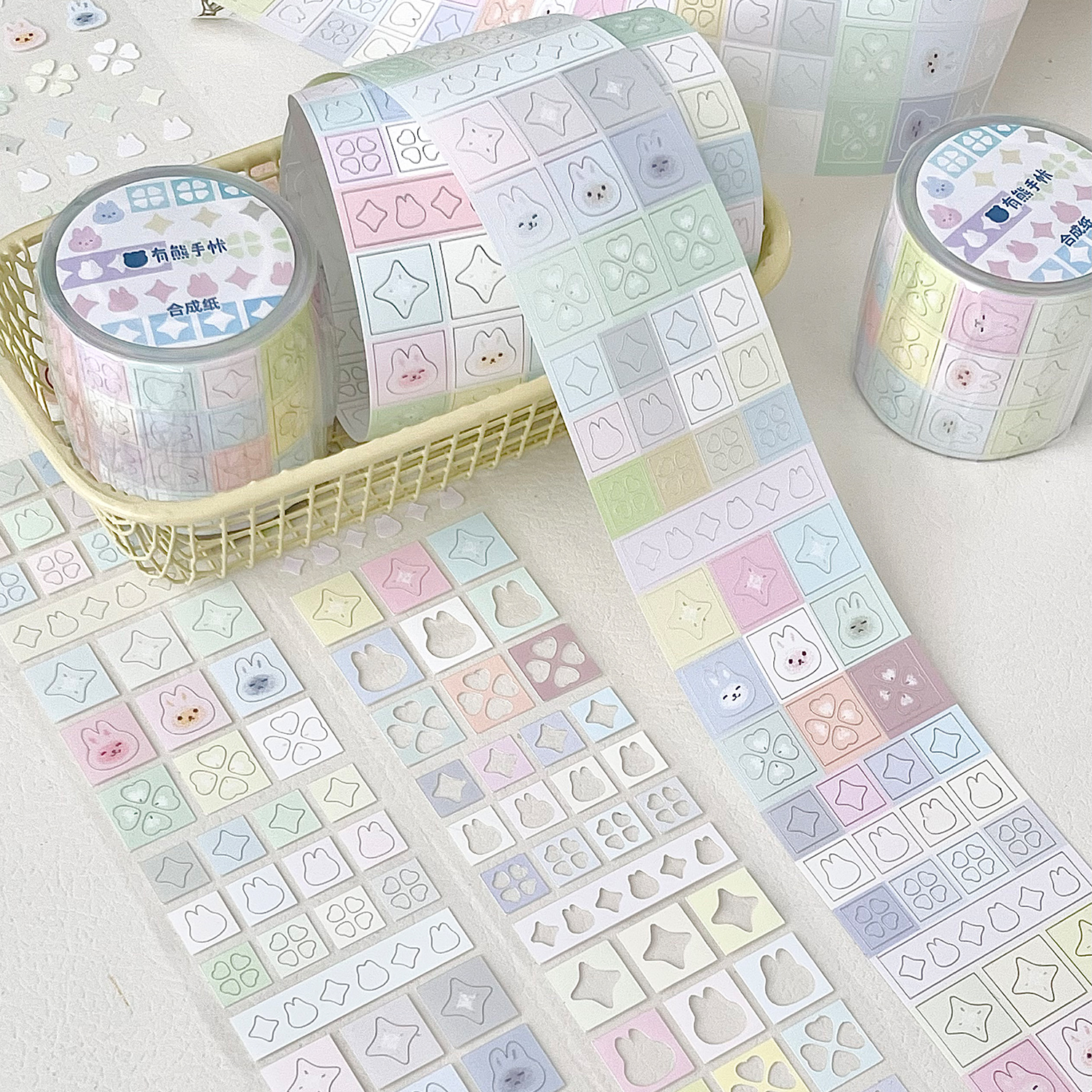 星运兔 韩系双反切贴纸卷 合成纸PET基础款胶带手帐拼贴
