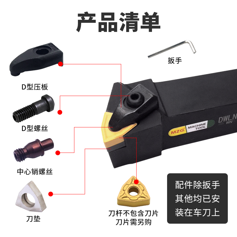 MZG数控车床刀具D型95度外圆车刀杆DWLNR/DWLNL-2525M08/2020K08