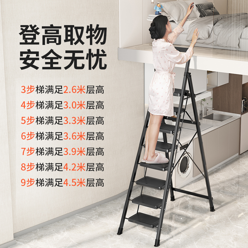 家用梯子折叠梯多功能人字梯室内加宽9步梯伸缩便携阁楼爬梯楼梯