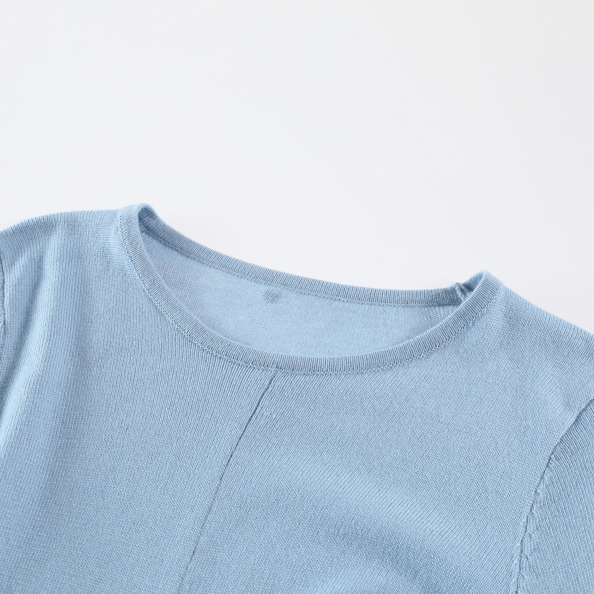 QQ【第二件0元】圆领羊套头短款大码宽松百搭打底针织
