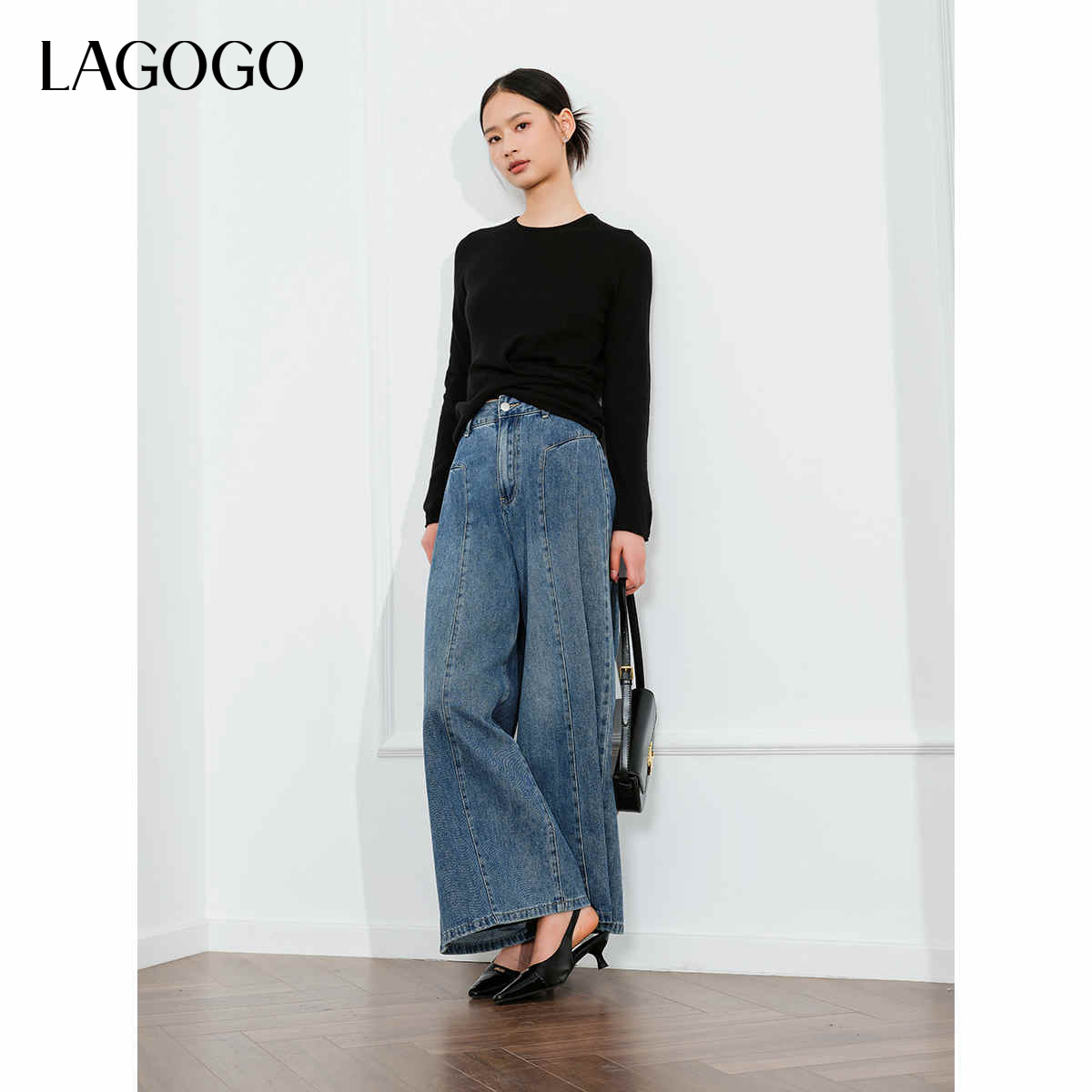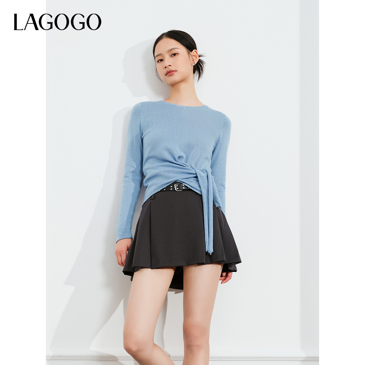 LAGOGO甜辣风舒适显瘦毛针织衫女拉谷谷春秋新款不对称设计上衣