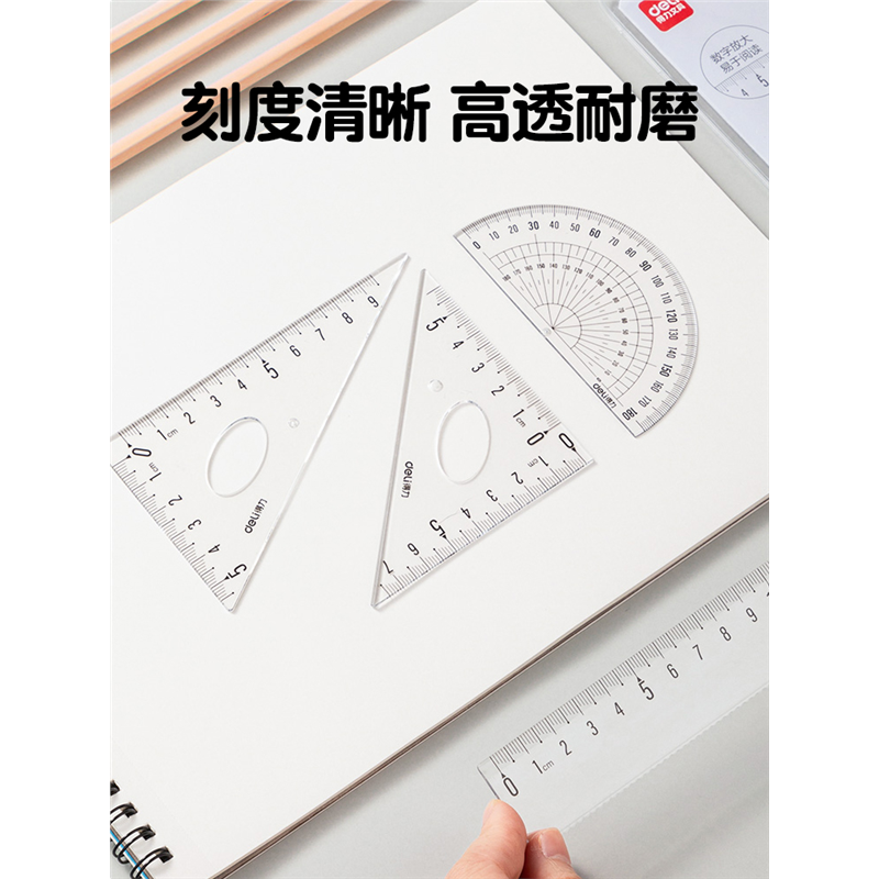 得力学生透明亚克力考试直尺套装四件套尺子一套三角板通用套装