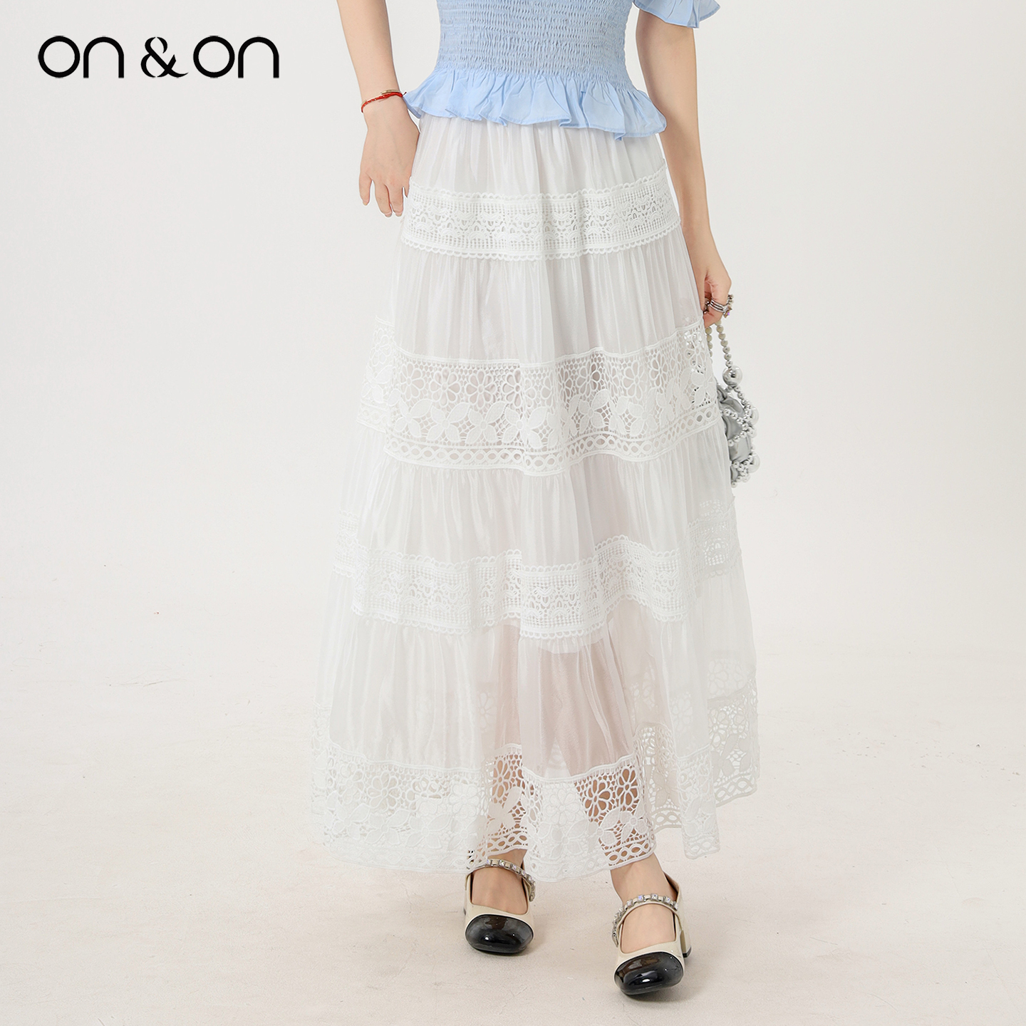 ON&ON/安乃安【舒心】韩系高腰弹力松紧蕾丝镂空温柔风半裙