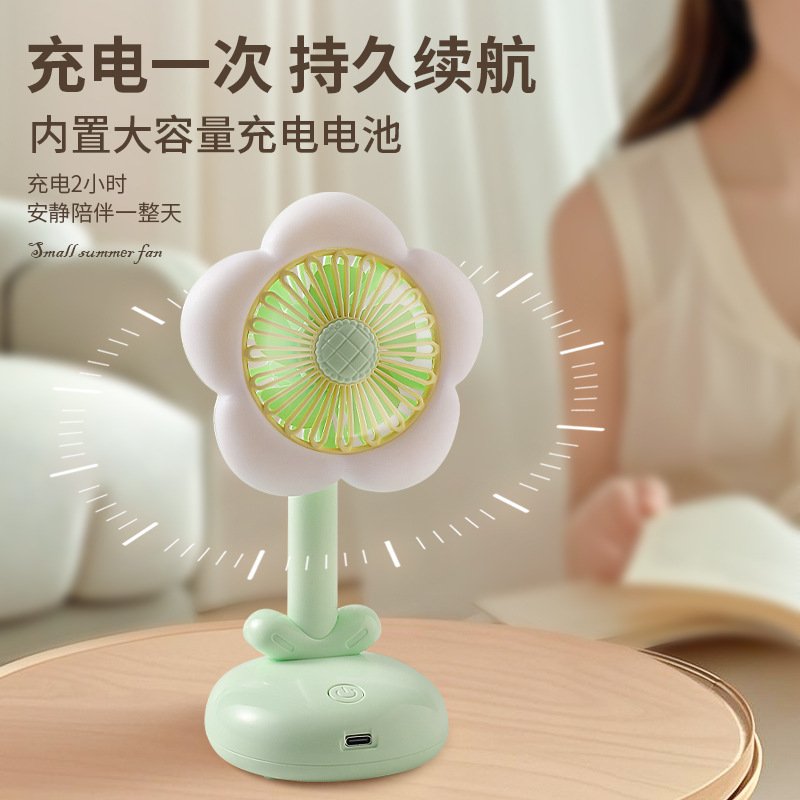 桌面花朵台灯风扇USB充电带灯光办公室宿舍学生夏天吹风解暑解热