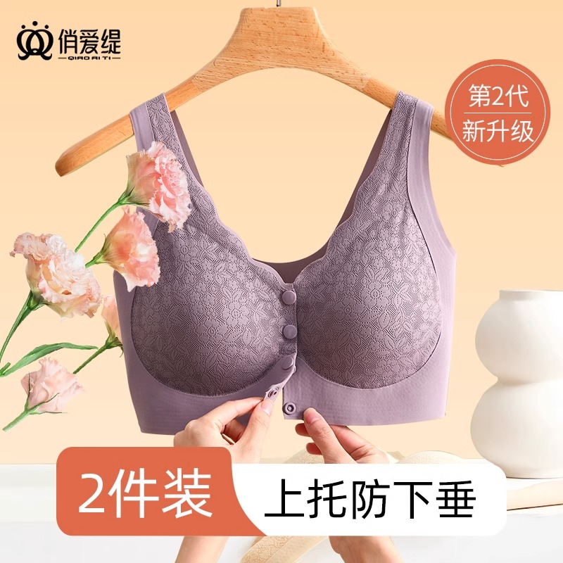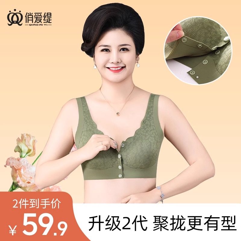 中老年妈妈前扣内衣上托聚拢防下垂美背文胸2024新款胸罩无钢圈