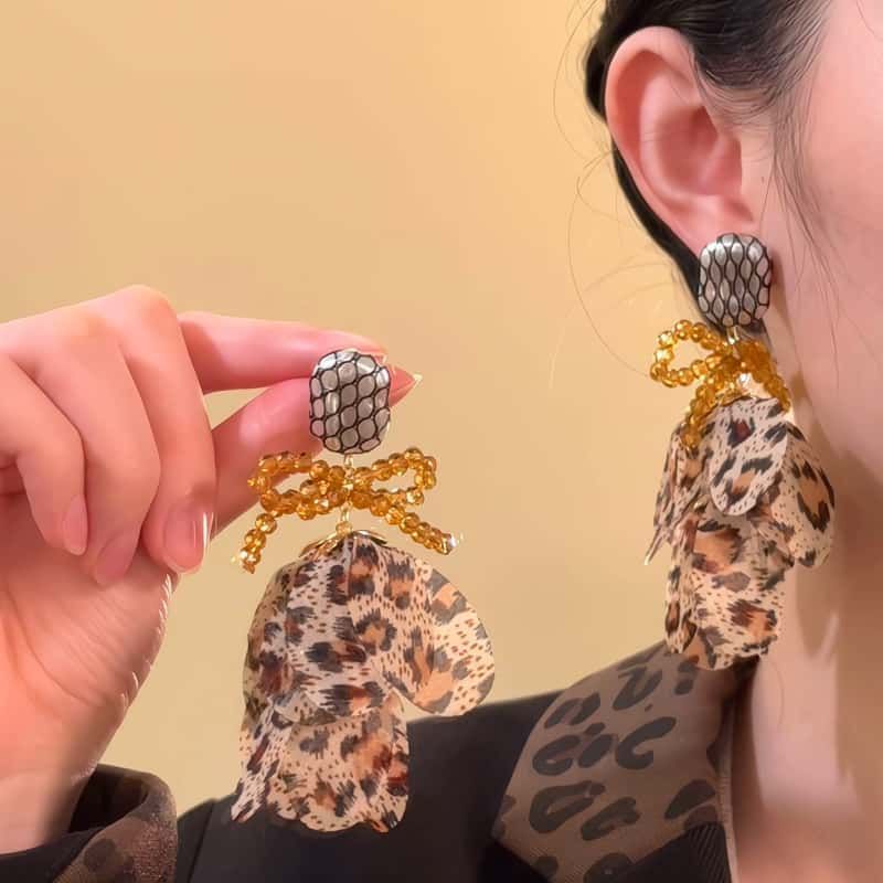 魅影之花~复古豹纹蝴蝶结珍珠耳钉气质绝美辣妹耳环夸张独特耳饰