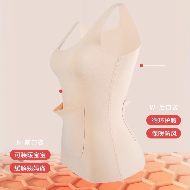 前后带口袋德绒护肚护腰保暖背心女秋冬无痕发热加绒厚内搭打底女