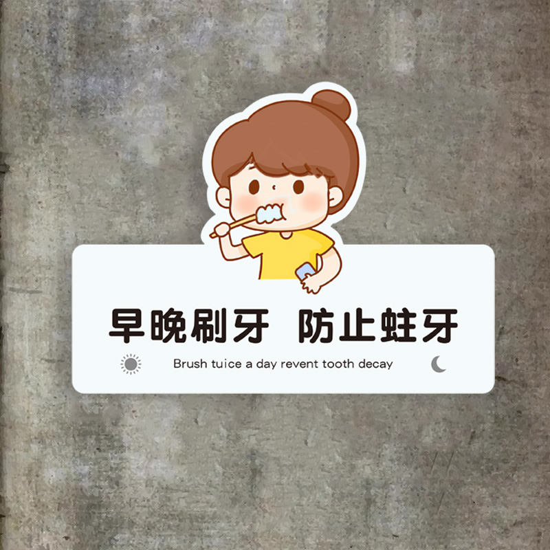 早晚刷牙预防蛀牙爱护牙齿儿童小孩子文明卫生好习惯提示亚克力牌