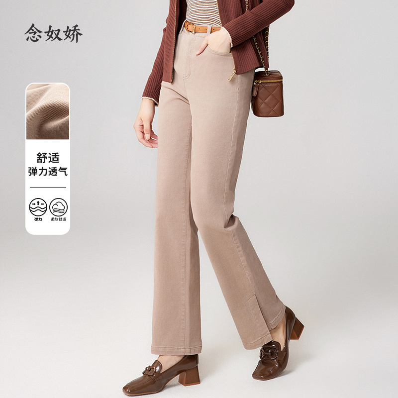 李李服饰米白色双扣丰胯微喇牛仔裤女2025秋季新款弹力显瘦长裤子