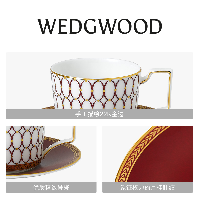 WEDGWOOD威基伍德金粉年华2杯2碟骨瓷咖啡杯精致送礼