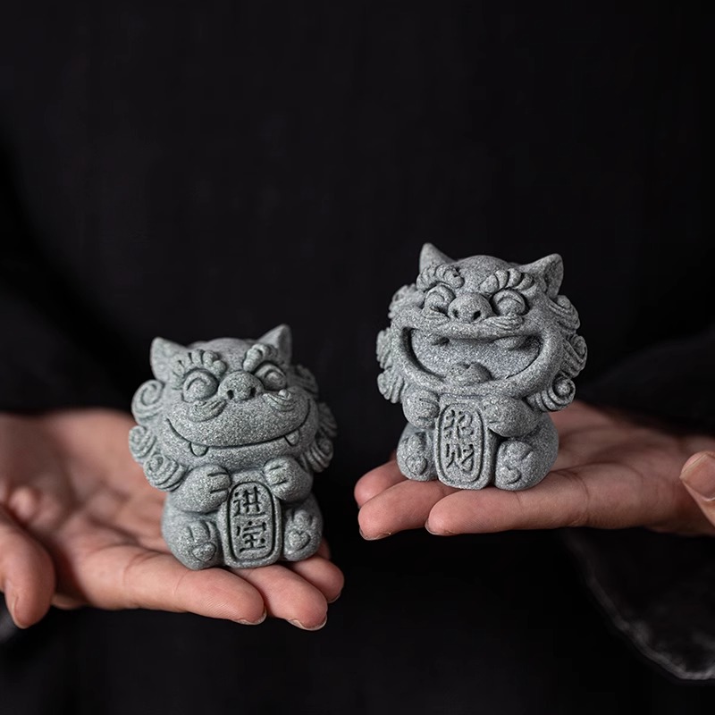 国潮风一对小号风狮爷桌面茶宠摆件创意盆栽鱼缸装饰元宝底座招财