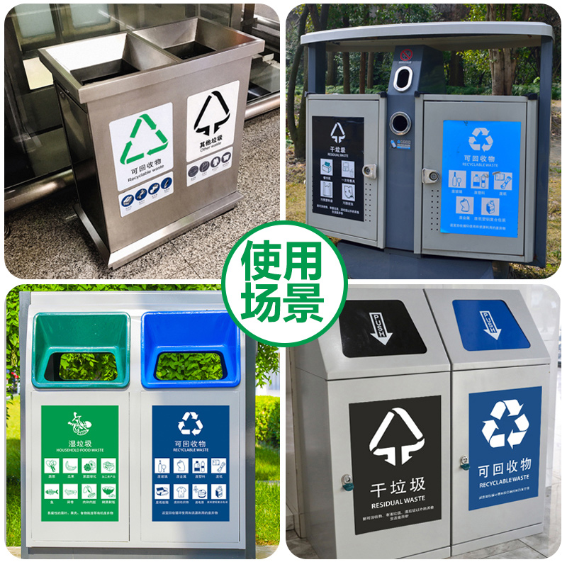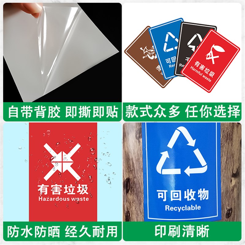 垃圾分类标识贴纸干湿其他厨余有害可回收垃圾桶贴自带背胶即撕即
