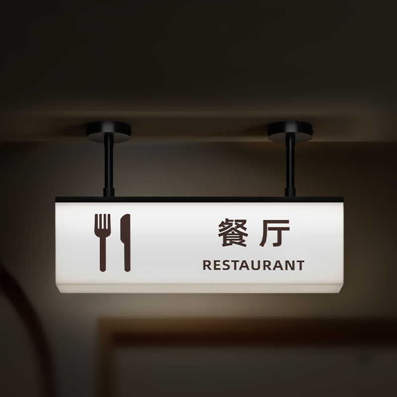 高档酒店餐厅LED指示牌灯箱定制餐饮取餐悬挂标识饭店明档吊挂LOGO牌订制双面发光指引牌休闲区休息区提示牌