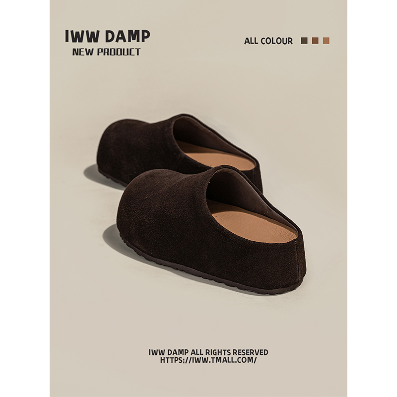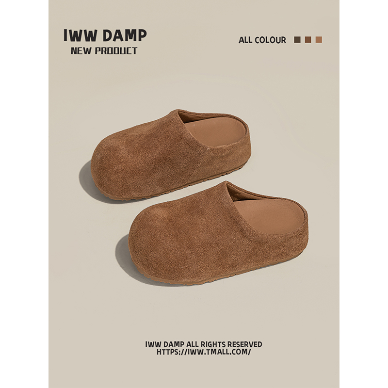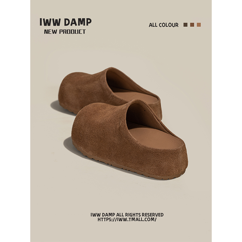 IWW厚底卡皮巴拉大头包头半拖鞋女2025新款复古萌系一脚蹬勃肯鞋