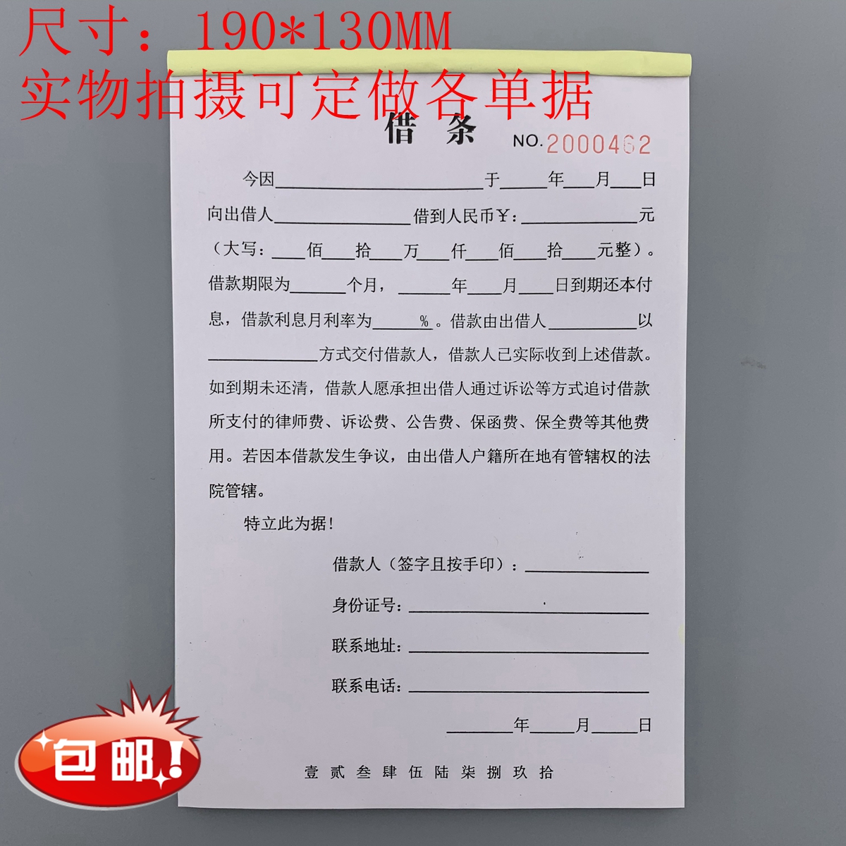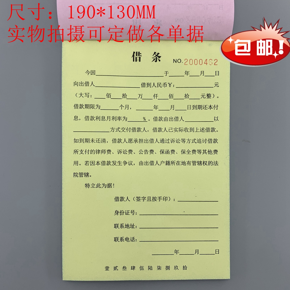 包邮借款正规借条单据法律个人认可欠条本欠款单协议担保模板符合