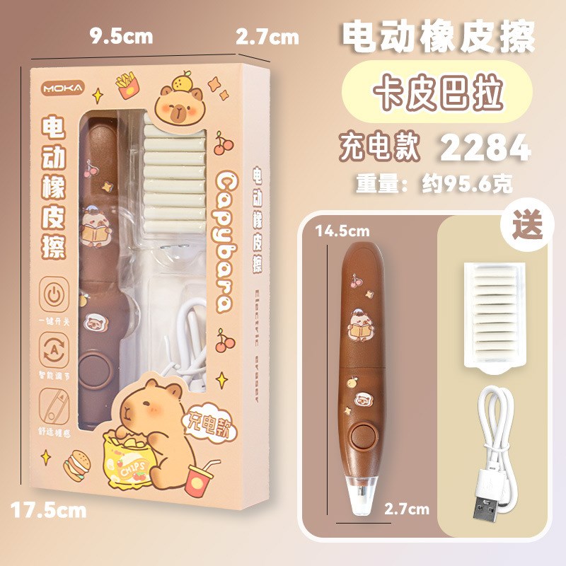 卡皮巴拉电动橡皮擦小学生可充电全自动橡笔擦美术生多功能少屑省