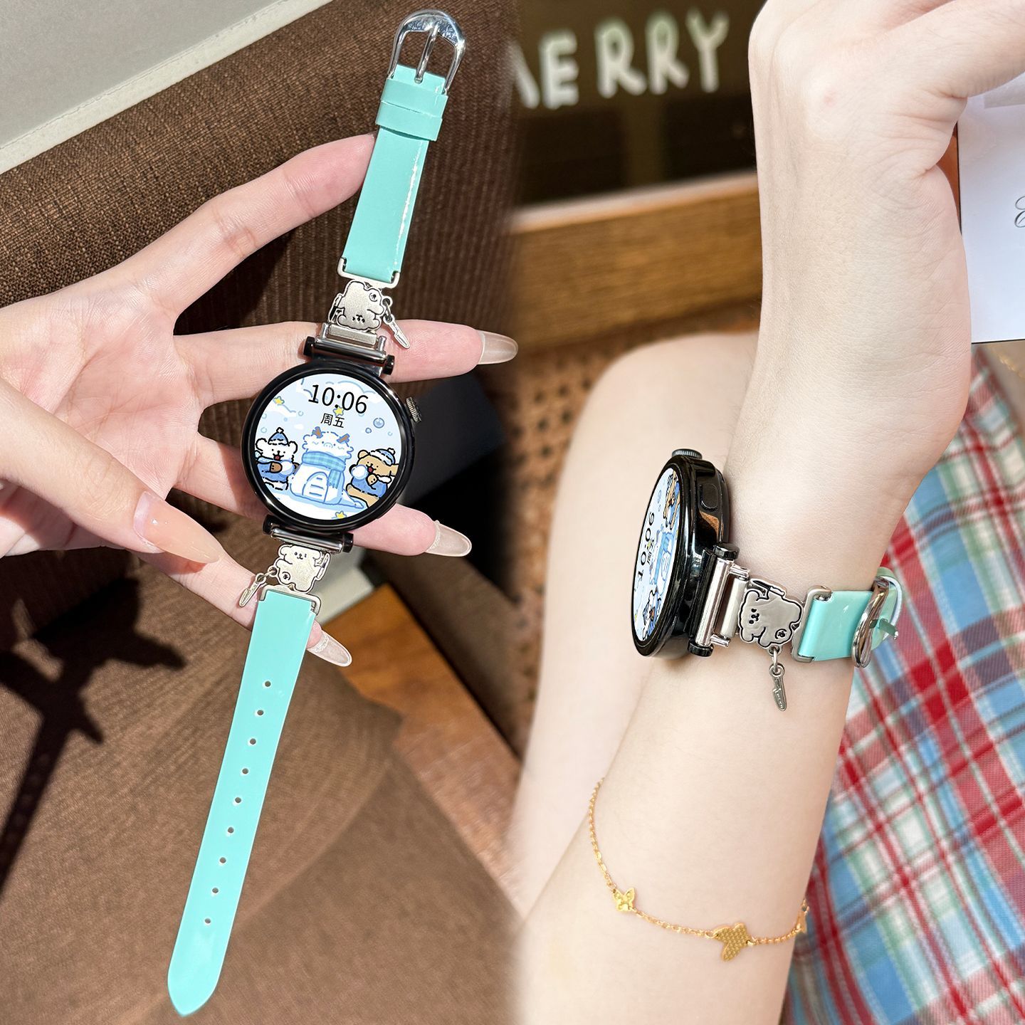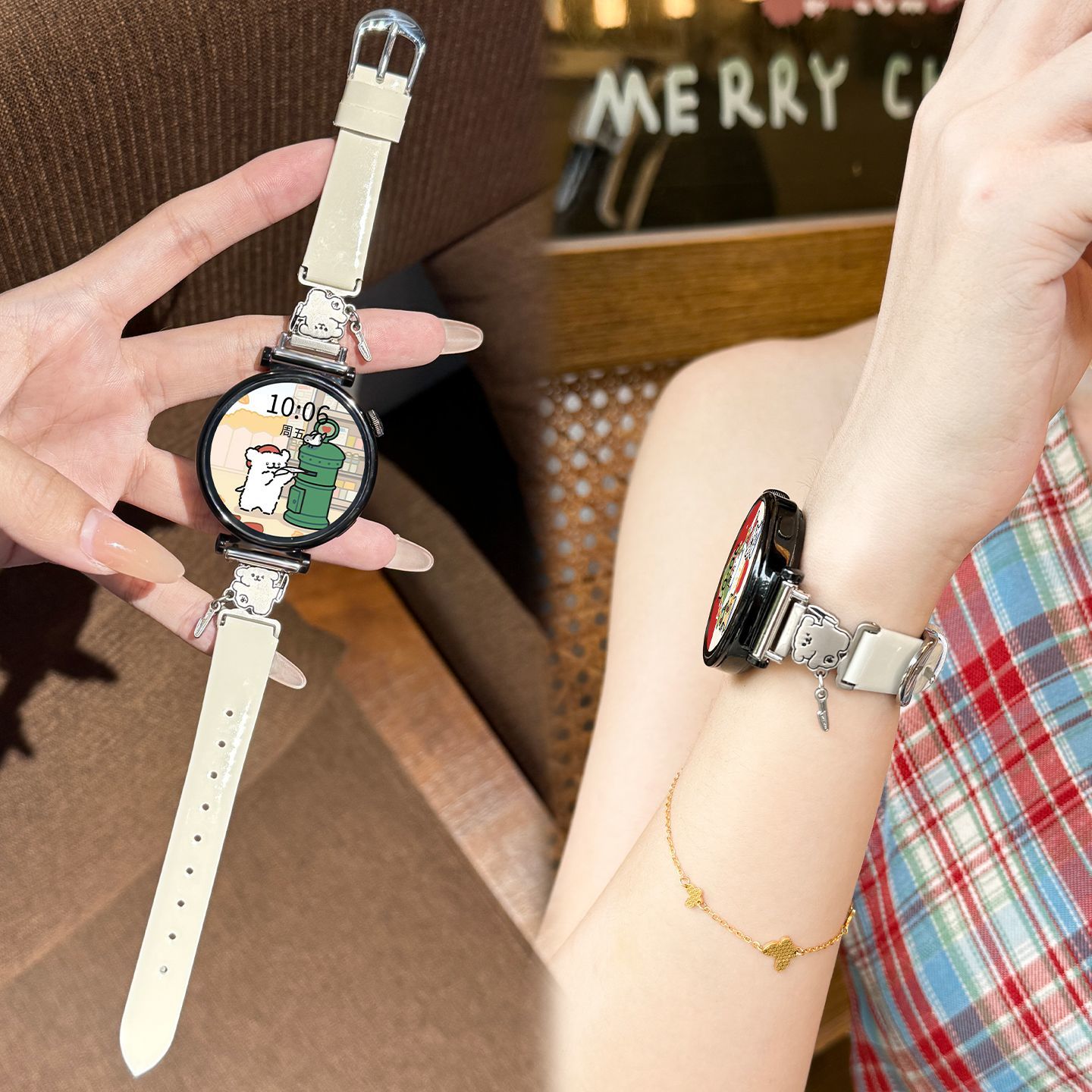【带刀小狗】适用华为手表gt6表带新款卡通装饰皮质百搭watch5/gt5pro金属拼皮小米手表s4百搭显手白