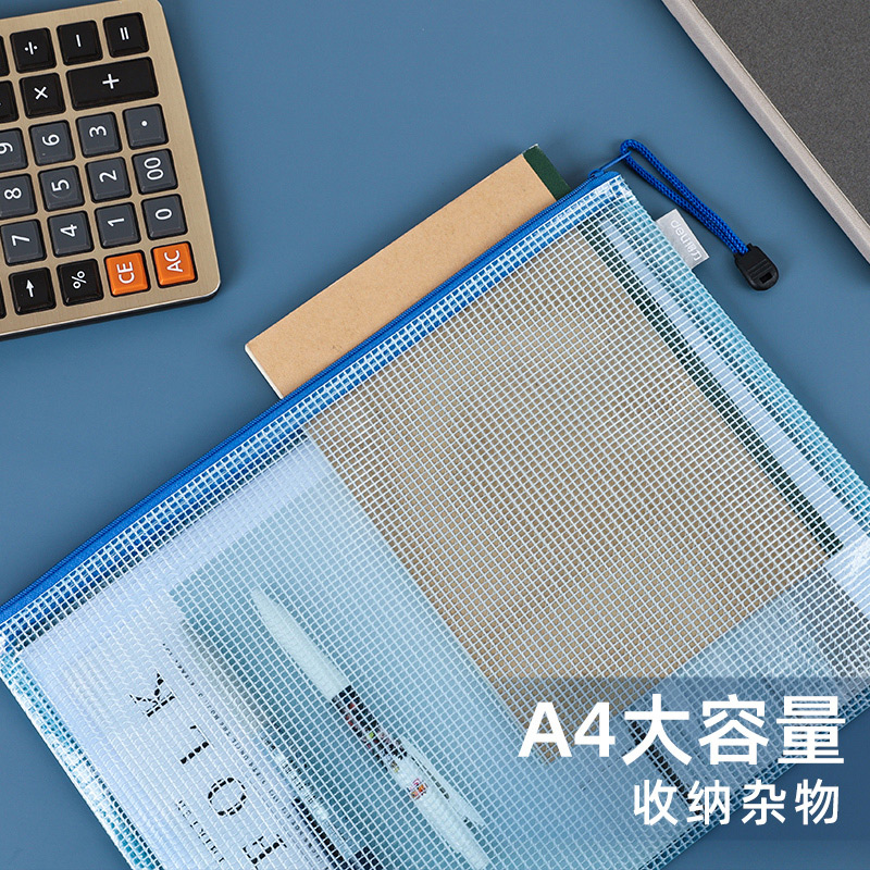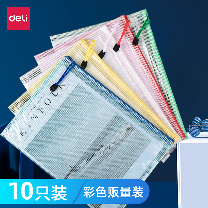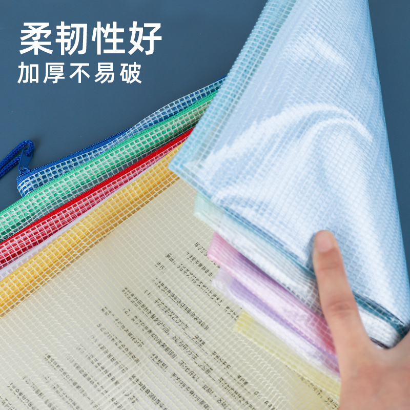 得力A4网格拉链袋文件袋文件夹学科袋加厚大容量学生试卷收纳袋资料袋透明防水塑料袋A4多色文具口罩收纳袋