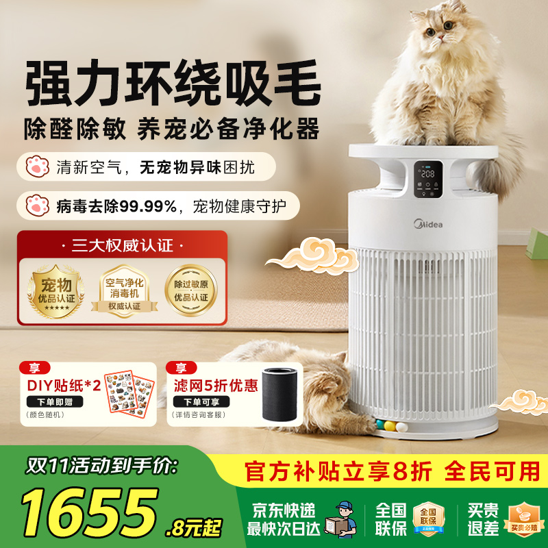 美的宠物空气净化器家用吸猫毛除过敏原杀菌除异味小怪兽PET500
