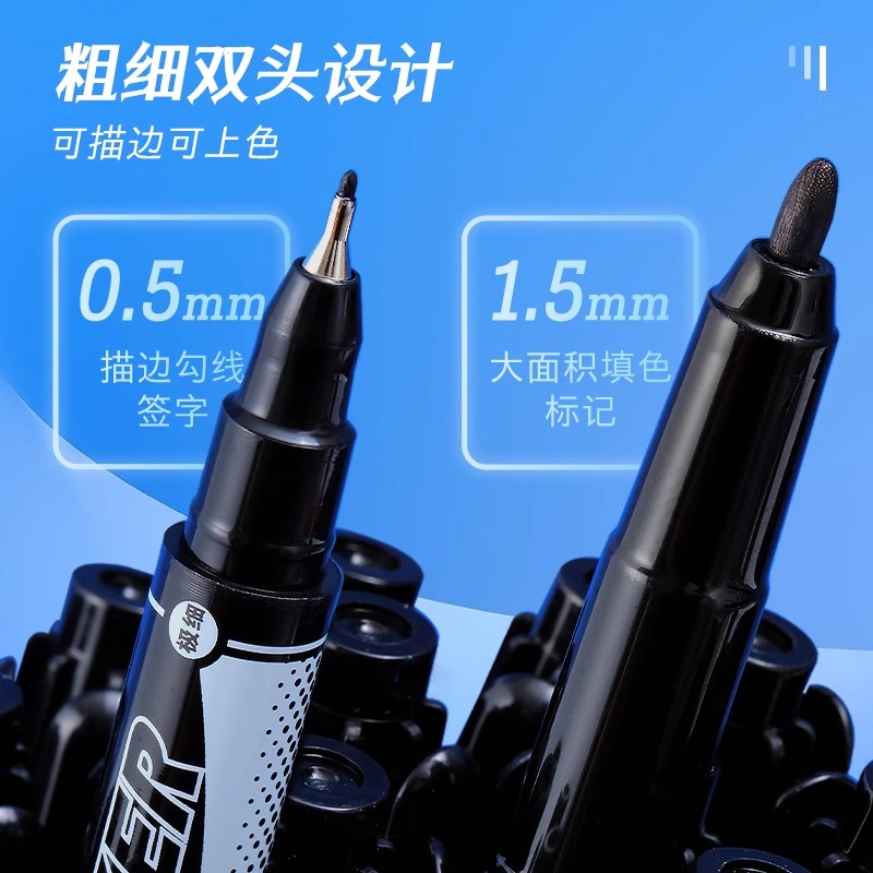 晨光记号笔勾线笔美术专用小学生绘画黑色油性粗细两头双头儿童幼儿园马克笔描边速干防水防油不掉色工地划线