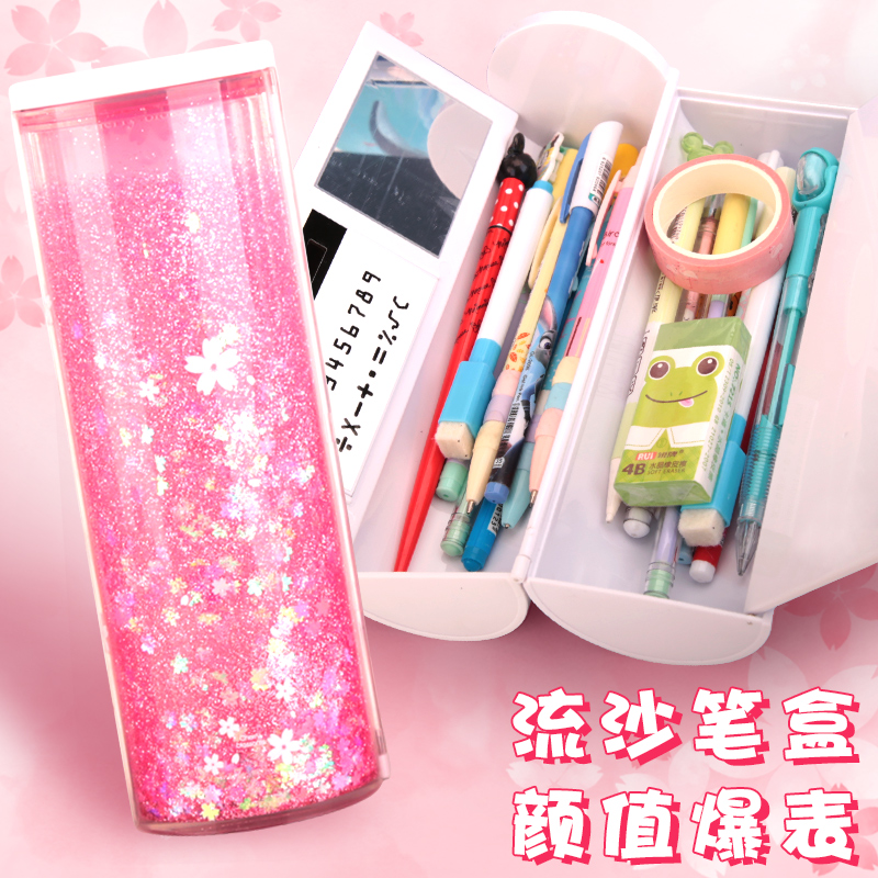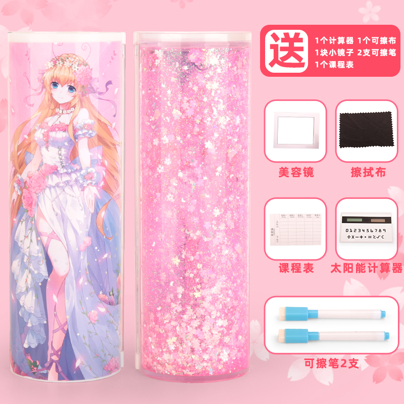 网纱笔袋美术大学素描卡s通新款圆形学习用品漂亮旋转高级铁质流