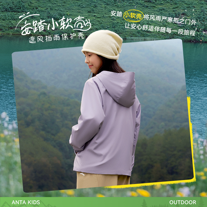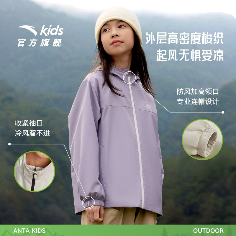 安踏儿童女童外套运动上衣2025春季新款青少年防水防风衣女孩外套